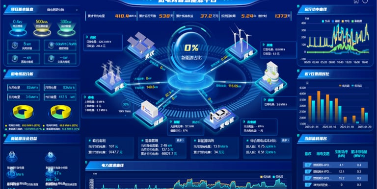 整合光伏、风电、储能、充电桩、负荷等多元能源,实现新能源消纳、峰谷套利、需量管理,用数据驱动微电网高效、经济、安全运行。