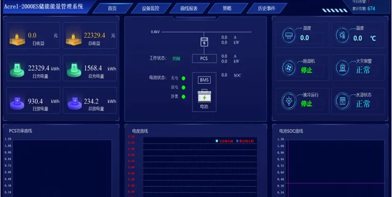 聚焦充放电管理、收益统计、设备状态三大核心,通过功率曲线、SOC 曲线等可视化工具,精准把控储能系统运行,保障安全与收益双优。